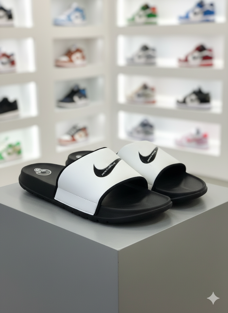 This image features a pair of sleek black leather moccasin loafers showcased on a light wood-effect floor within a bright, modern shoe store. The loafers combine a classic, comfortable slip-on silhouette with a subtle, contemporary detail. The shoes are made from a black leather...- Rs. 1,599.00